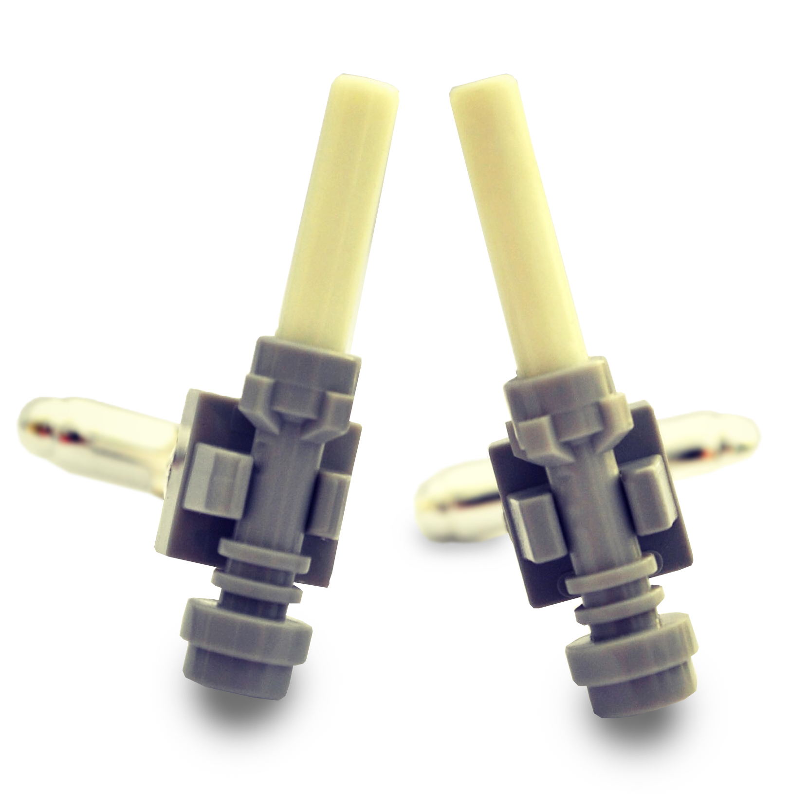 Lingo Luxe cufflinks are handmade with silver-plated backs featuring mini LEGO lightsabers. They are designed with a tornado style cufflink closure for a quick and easy addition to any menswear outfit.